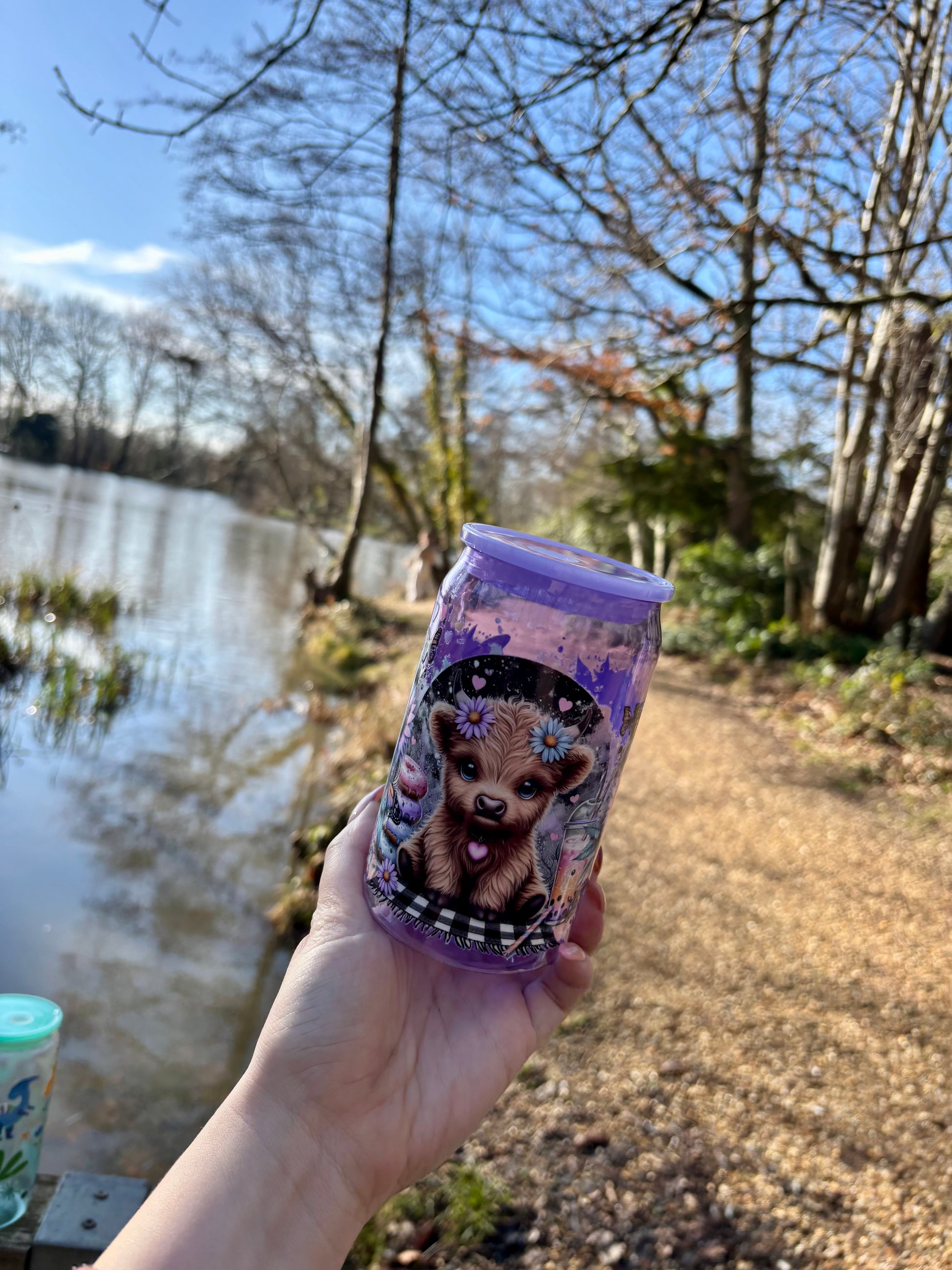 Featuring an adorable fluffy Highland cow surrounded by florals and soft woodland details, this cup is perfect for anyone who loves cozy, cottagecore vibes.